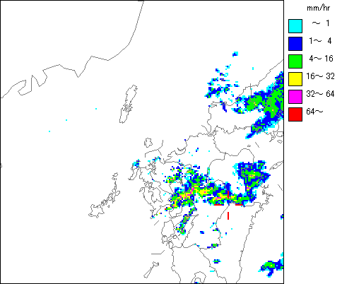 気象レーダー画像(降水強度) 1993年07月17日21時00分 福岡