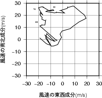 表中のMUCAPE850hPaは、最不安定CAPE(地上~850hPa高度間で)を示す。 気温、露点の鉛直分布(エマグラム)鹿児島 1993年09月03日09時(高層気象観測データを使用)![]() 赤線は、地表付近の空気塊を仮想的に上昇させたときの空気塊の温度の変化を示す。 湿球温位、温位、相当温位、飽和相当温位の鉛直分布鹿児島 1993年09月03日09時(高層気象観測データを使用)![]() 風のホドグラフ(広域)鹿児島 1993年09月03日09時(高層気象観測データを使用)![]() 風のホドグラフ(拡大)鹿児島 1993年09月03日09時(高層気象観測データを使用)![]() |