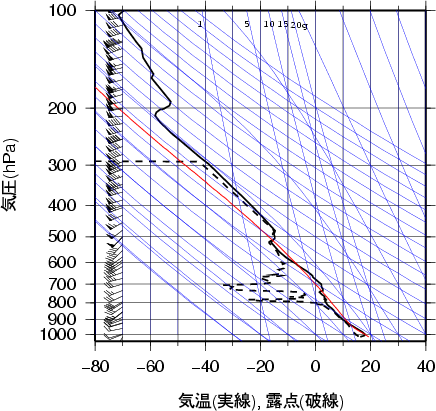 大気パラメータ輪島 1993年10月17日09時(高層気象観測データを使用)