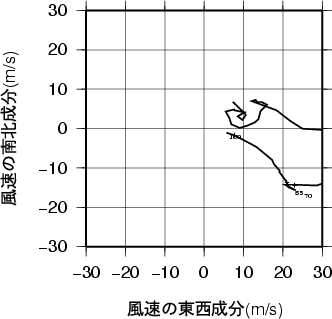表中のMUCAPE850hPaは、最不安定CAPE(地上~850hPa高度間で)を示す。 気温、露点の鉛直分布(エマグラム)館野 1997年02月21日21時(高層気象観測データを使用)![]() 赤線は、地表付近の空気塊を仮想的に上昇させたときの空気塊の温度の変化を示す。 湿球温位、温位、相当温位、飽和相当温位の鉛直分布館野 1997年02月21日21時(高層気象観測データを使用)![]() 風のホドグラフ(広域)館野 1997年02月21日21時(高層気象観測データを使用)![]() 風のホドグラフ(拡大)館野 1997年02月21日21時(高層気象観測データを使用)![]() |