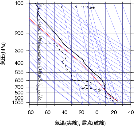 大気パラメータ名瀬 2000年09月05日21時(高層気象観測データを使用)