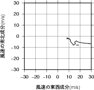 表中のMUCAPE850hPaは、最不安定CAPE(地上~850hPa高度間で)を示す。 気温、露点の鉛直分布(エマグラム)浜松 2001年01月11日21時(高層気象観測データを使用)![]() 赤線は、地表付近の空気塊を仮想的に上昇させたときの空気塊の温度の変化を示す。 湿球温位、温位、相当温位、飽和相当温位の鉛直分布浜松 2001年01月11日21時(高層気象観測データを使用)![]() 風のホドグラフ(広域)浜松 2001年01月11日21時(高層気象観測データを使用)![]() 風のホドグラフ(拡大)浜松 2001年01月11日21時(高層気象観測データを使用)![]() |