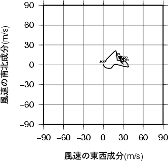表中のMUCAPE850hPaは、最不安定CAPE(地上~850hPa高度間で)を示す。 気温、露点の鉛直分布(エマグラム)輪島 2001年06月19日09時(高層気象観測データを使用)![]() 赤線は、地表付近の空気塊を仮想的に上昇させたときの空気塊の温度の変化を示す。 湿球温位、温位、相当温位、飽和相当温位の鉛直分布輪島 2001年06月19日09時(高層気象観測データを使用)![]() 風のホドグラフ(広域)輪島 2001年06月19日09時(高層気象観測データを使用)![]() 風のホドグラフ(拡大)輪島 2001年06月19日09時(高層気象観測データを使用)![]() |