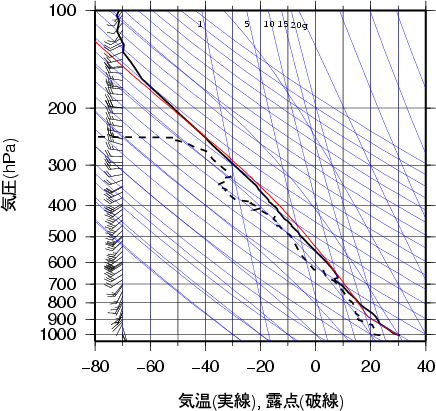 大気パラメータ仙台 2002年08月10日09時(高層気象観測データを使用)
