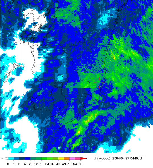 気象レーダー画像(降水強度) 2004年04月27日04時40分