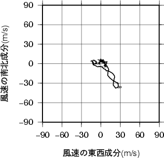 表中のMUCAPE850hPaは、最不安定CAPE(地上~850hPa高度間で)を示す。 気温、露点の鉛直分布(エマグラム)米子 2006年06月14日09時(高層気象観測データを使用)![]() 赤線は、地表付近の空気塊を仮想的に上昇させたときの空気塊の温度の変化を示す。 湿球温位、温位、相当温位、飽和相当温位の鉛直分布米子 2006年06月14日09時(高層気象観測データを使用)![]() 風のホドグラフ(広域)米子 2006年06月14日09時(高層気象観測データを使用)![]() 風のホドグラフ(拡大)米子 2006年06月14日09時(高層気象観測データを使用)![]() |