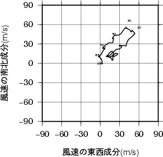 表中のMUCAPE850hPaは、最不安定CAPE(地上~850hPa高度間で)を示す。 気温、露点の鉛直分布(エマグラム)三沢 2006年11月07日09時(高層気象観測データを使用)![]() 赤線は、地表付近の空気塊を仮想的に上昇させたときの空気塊の温度の変化を示す。 湿球温位、温位、相当温位、飽和相当温位の鉛直分布三沢 2006年11月07日09時(高層気象観測データを使用)![]() 風のホドグラフ(広域)三沢 2006年11月07日09時(高層気象観測データを使用)![]() 風のホドグラフ(拡大)三沢 2006年11月07日09時(高層気象観測データを使用)![]() |