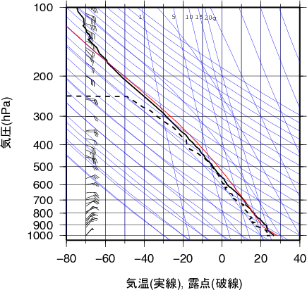 大気パラメータ南大東島 2008年07月22日21時(高層気象観測データを使用)