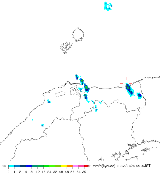 気象レーダー画像(降水強度) 2008年07月30日09時00分