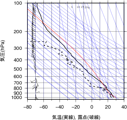 大気パラメータ館野 2008年08月08日21時(高層気象観測データを使用)