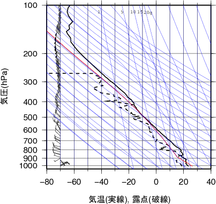 大気パラメータ館野 2008年08月09日21時(高層気象観測データを使用)