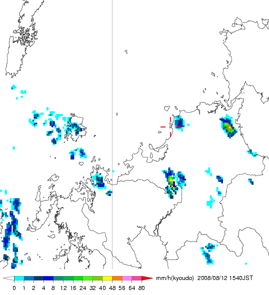気象レーダー画像(降水強度) 2008年08月12日15時40分