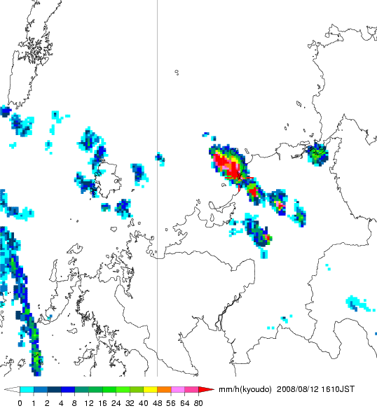 気象レーダー画像(降水強度) 2008年08月12日16時10分