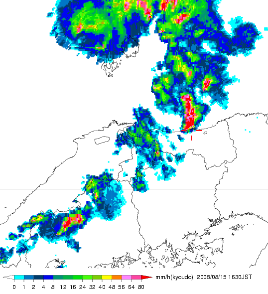 気象レーダー画像(降水強度) 2008年08月15日16時30分
