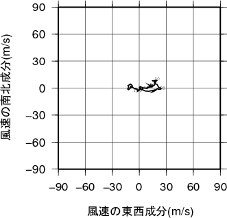 表中のMUCAPE850hPaは、最不安定CAPE(地上~850hPa高度間で)を示す。 気温、露点の鉛直分布(エマグラム)輪島 2008年08月15日09時(高層気象観測データを使用)![]() 赤線は、地表付近の空気塊を仮想的に上昇させたときの空気塊の温度の変化を示す。 湿球温位、温位、相当温位、飽和相当温位の鉛直分布輪島 2008年08月15日09時(高層気象観測データを使用)![]() 風のホドグラフ(広域)輪島 2008年08月15日09時(高層気象観測データを使用)![]() 風のホドグラフ(拡大)輪島 2008年08月15日09時(高層気象観測データを使用)![]() |