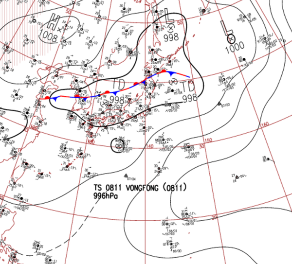 地上天気図 2008年08月15日15時