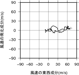 表中のMUCAPE850hPaは、最不安定CAPE(地上~850hPa高度間で)を示す。 気温、露点の鉛直分布(エマグラム)米子 2009年12月18日21時(高層気象観測データを使用)![]() 赤線は、地表付近の空気塊を仮想的に上昇させたときの空気塊の温度の変化を示す。 湿球温位、温位、相当温位、飽和相当温位の鉛直分布米子 2009年12月18日21時(高層気象観測データを使用)![]() 風のホドグラフ(広域)米子 2009年12月18日21時(高層気象観測データを使用)![]() 風のホドグラフ(拡大)米子 2009年12月18日21時(高層気象観測データを使用)![]() |