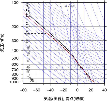 大気パラメータ鹿児島 2010年06月25日09時(高層気象観測データを使用)