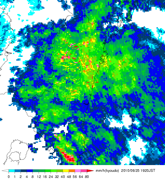 気象レーダー画像(降水強度) 2010年06月25日19時10分