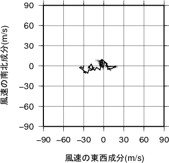 表中のMUCAPE850hPaは、最不安定CAPE(地上~850hPa高度間で)を示す。 気温、露点の鉛直分布(エマグラム)名瀬 2010年07月25日21時(高層気象観測データを使用)![]() 赤線は、地表付近の空気塊を仮想的に上昇させたときの空気塊の温度の変化を示す。 湿球温位、温位、相当温位、飽和相当温位の鉛直分布名瀬 2010年07月25日21時(高層気象観測データを使用)![]() 風のホドグラフ(広域)名瀬 2010年07月25日21時(高層気象観測データを使用)![]() 風のホドグラフ(拡大)名瀬 2010年07月25日21時(高層気象観測データを使用)![]() |