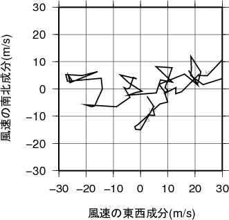 表中のMUCAPE850hPaは、最不安定CAPE(地上~850hPa高度間で)を示す。 気温、露点の鉛直分布(エマグラム)鹿児島 2010年11月22日21時(高層気象観測データを使用)![]() 赤線は、地表付近の空気塊を仮想的に上昇させたときの空気塊の温度の変化を示す。 湿球温位、温位、相当温位、飽和相当温位の鉛直分布鹿児島 2010年11月22日21時(高層気象観測データを使用)![]() 風のホドグラフ(広域)鹿児島 2010年11月22日21時(高層気象観測データを使用)![]() 風のホドグラフ(拡大)鹿児島 2010年11月22日21時(高層気象観測データを使用)![]() |