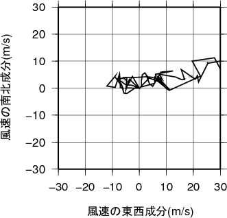 表中のMUCAPE850hPaは、最不安定CAPE(地上~850hPa高度間で)を示す。 気温、露点の鉛直分布(エマグラム)札幌 2011年08月20日09時(高層気象観測データを使用)![]() 赤線は、地表付近の空気塊を仮想的に上昇させたときの空気塊の温度の変化を示す。 湿球温位、温位、相当温位、飽和相当温位の鉛直分布札幌 2011年08月20日09時(高層気象観測データを使用)![]() 風のホドグラフ(広域)札幌 2011年08月20日09時(高層気象観測データを使用)![]() 風のホドグラフ(拡大)札幌 2011年08月20日09時(高層気象観測データを使用)![]() |