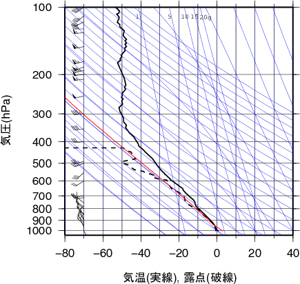 大気パラメータ札幌 2012年11月20日09時(高層気象観測データを使用)