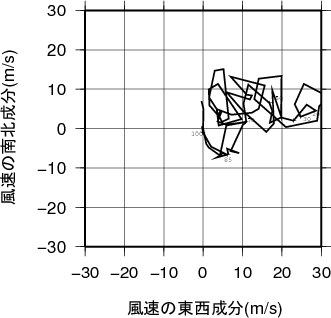 表中のMUCAPE850hPaは、最不安定CAPE(地上~850hPa高度間で)を示す。 気温、露点の鉛直分布(エマグラム)札幌 2012年11月20日09時(高層気象観測データを使用)![]() 赤線は、地表付近の空気塊を仮想的に上昇させたときの空気塊の温度の変化を示す。 湿球温位、温位、相当温位、飽和相当温位の鉛直分布札幌 2012年11月20日09時(高層気象観測データを使用)![]() 風のホドグラフ(広域)札幌 2012年11月20日09時(高層気象観測データを使用)![]() 風のホドグラフ(拡大)札幌 2012年11月20日09時(高層気象観測データを使用)![]() |