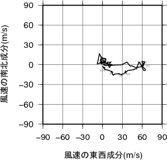 表中のMUCAPE850hPaは、最不安定CAPE(地上~850hPa高度間で)を示す。 気温、露点の鉛直分布(エマグラム)鹿児島 2013年12月10日09時(高層気象観測データを使用)![]() 赤線は、地表付近の空気塊を仮想的に上昇させたときの空気塊の温度の変化を示す。 湿球温位、温位、相当温位、飽和相当温位の鉛直分布鹿児島 2013年12月10日09時(高層気象観測データを使用)![]() 風のホドグラフ(広域)鹿児島 2013年12月10日09時(高層気象観測データを使用)![]() 風のホドグラフ(拡大)鹿児島 2013年12月10日09時(高層気象観測データを使用)![]() |