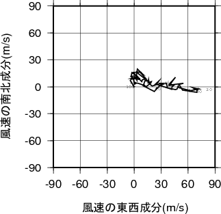 表中のMUCAPE850hPaは、最不安定CAPE(地上~850hPa高度間で)を示す。 気温、露点の鉛直分布(エマグラム)館野 2016年01月04日09時(高層気象観測データを使用)![]() 赤線は、地表付近の空気塊を仮想的に上昇させたときの空気塊の温度の変化を示す。 湿球温位、温位、相当温位、飽和相当温位の鉛直分布館野 2016年01月04日09時(高層気象観測データを使用)![]() 風のホドグラフ(広域)館野 2016年01月04日09時(高層気象観測データを使用)![]() 風のホドグラフ(拡大)館野 2016年01月04日09時(高層気象観測データを使用)![]() |