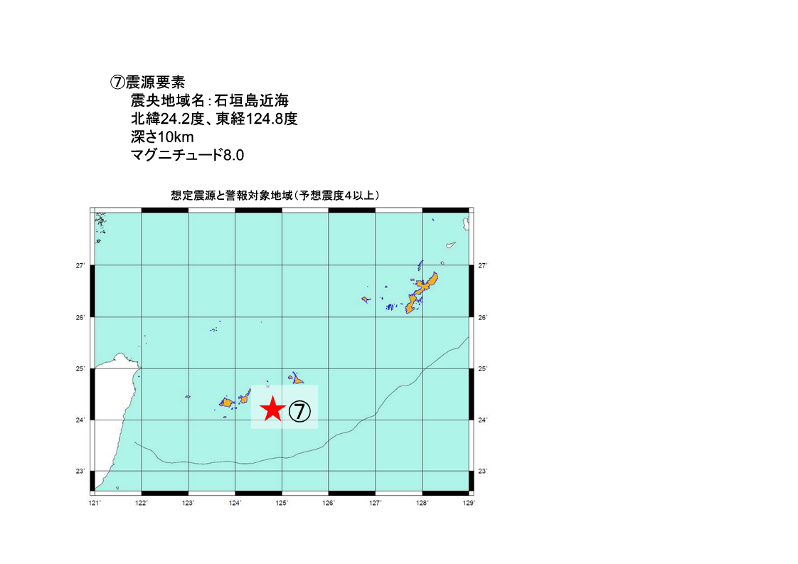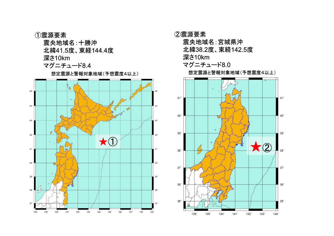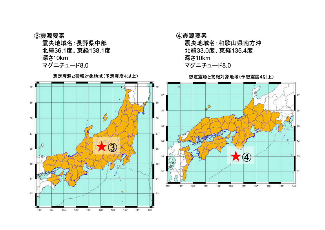 配信する訓練用の緊急地震速報による強い揺れの地域と震源要素