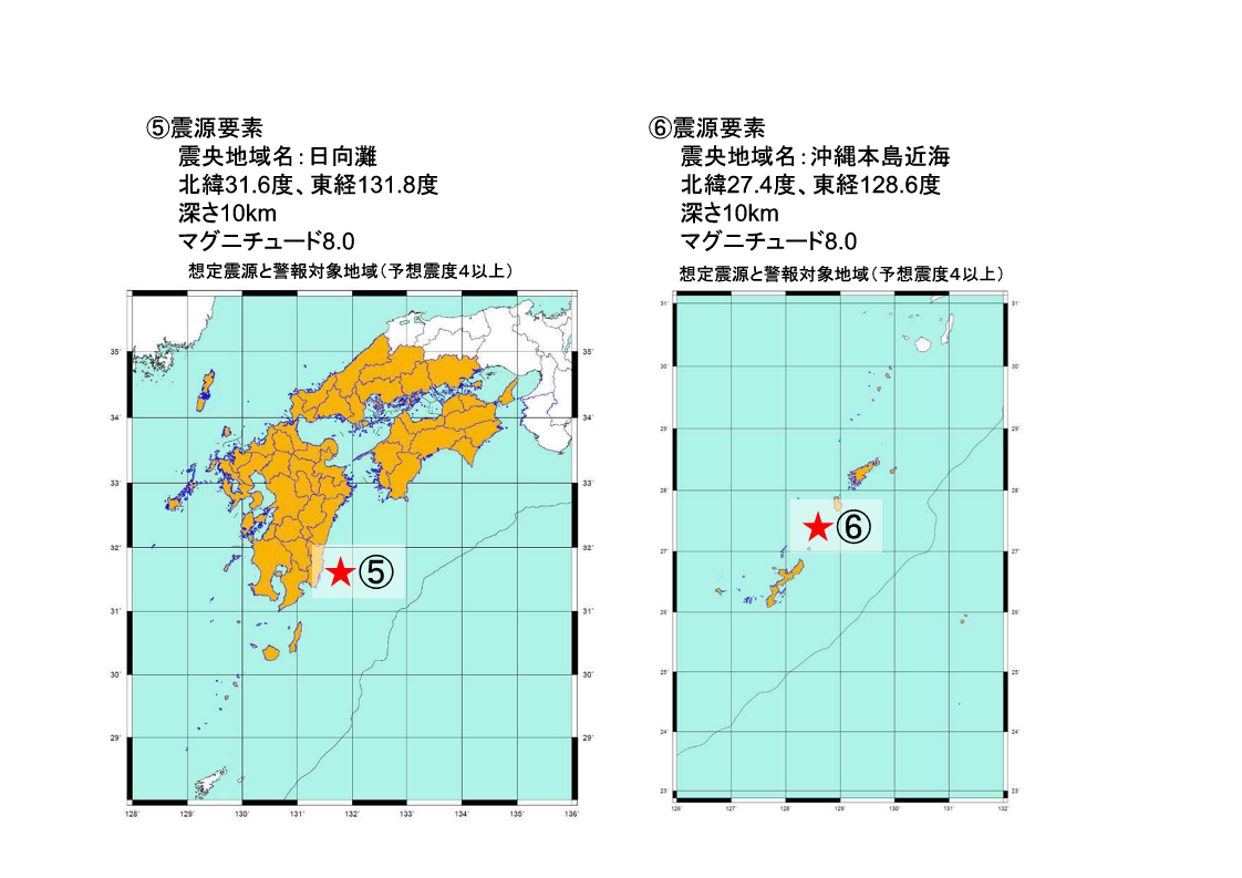 配信する訓練報の強い揺れの地域と震源要素は以下のとおりです。