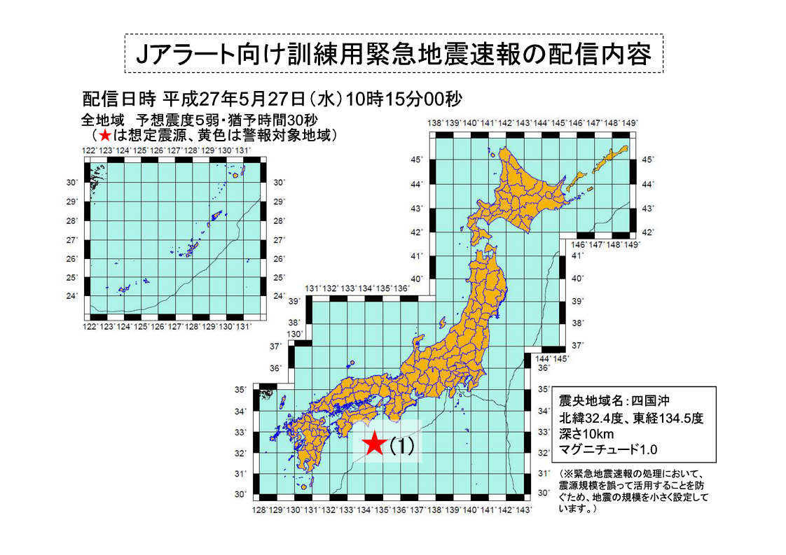 緊急地震速報の訓練(平成27年5月27日)