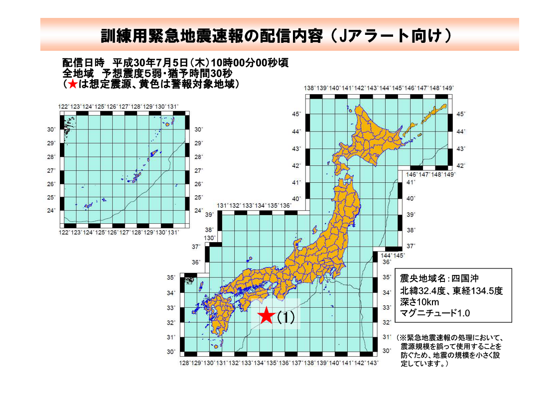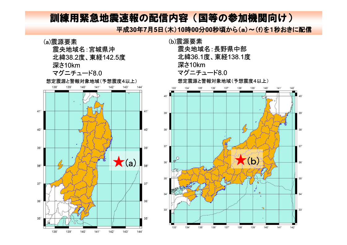 【気象庁から直接緊急地震速報を配信している国の機関等に向けて配信する訓練報の内容】