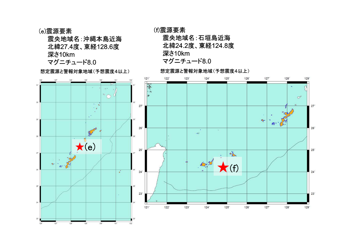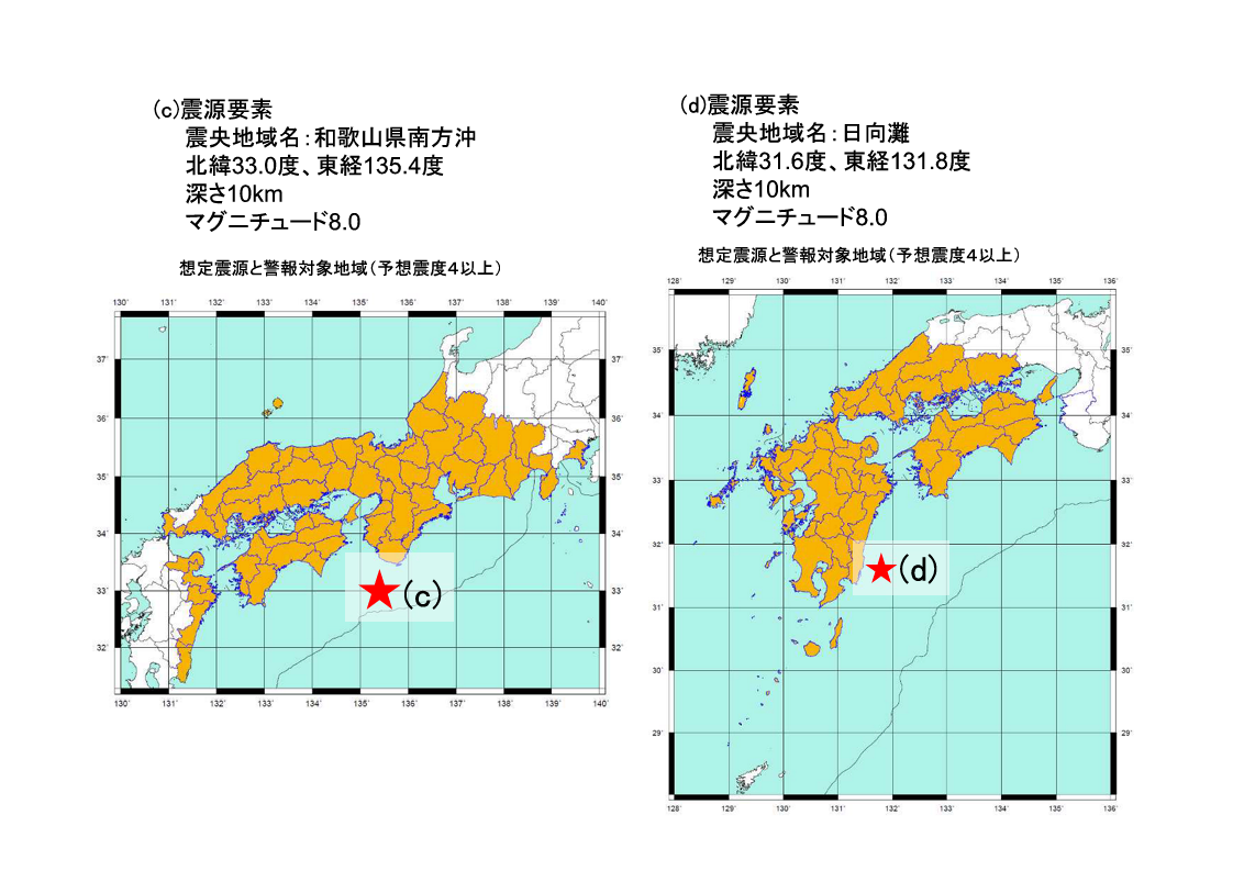 配信する訓練用の緊急地震速報による強い揺れの地域と震源要素