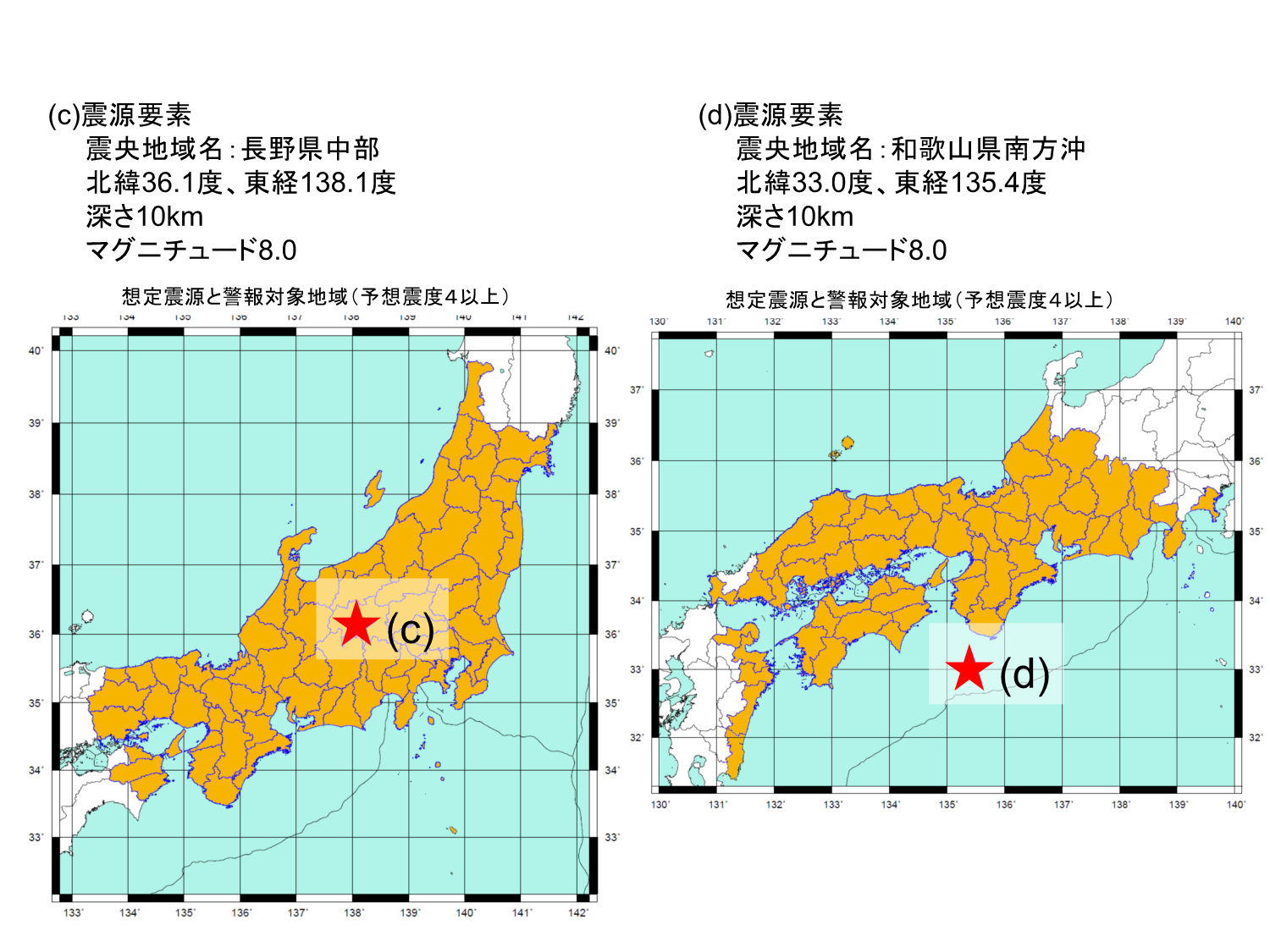 配信する訓練用の緊急地震速報による強い揺れの地域と震源要素