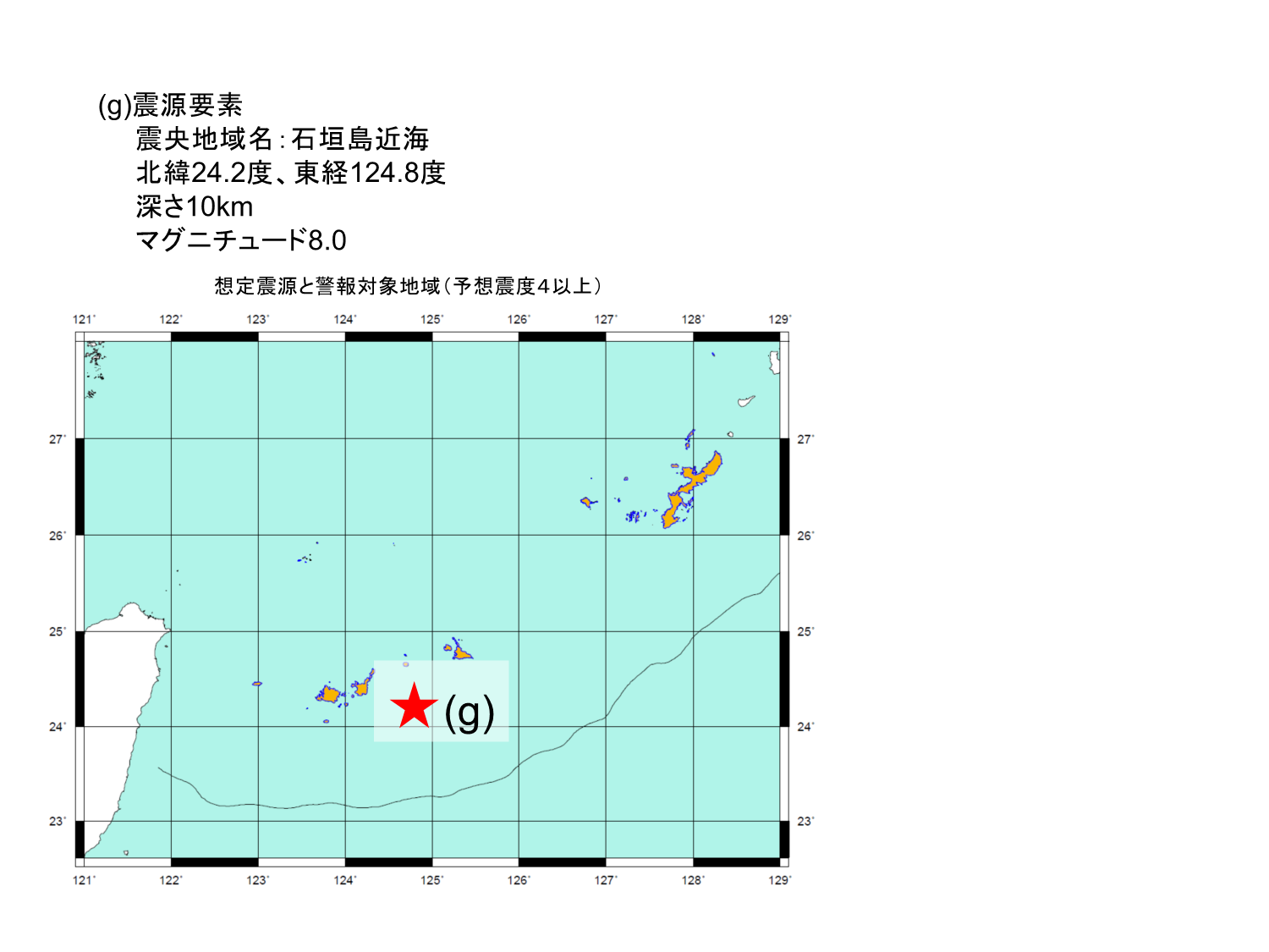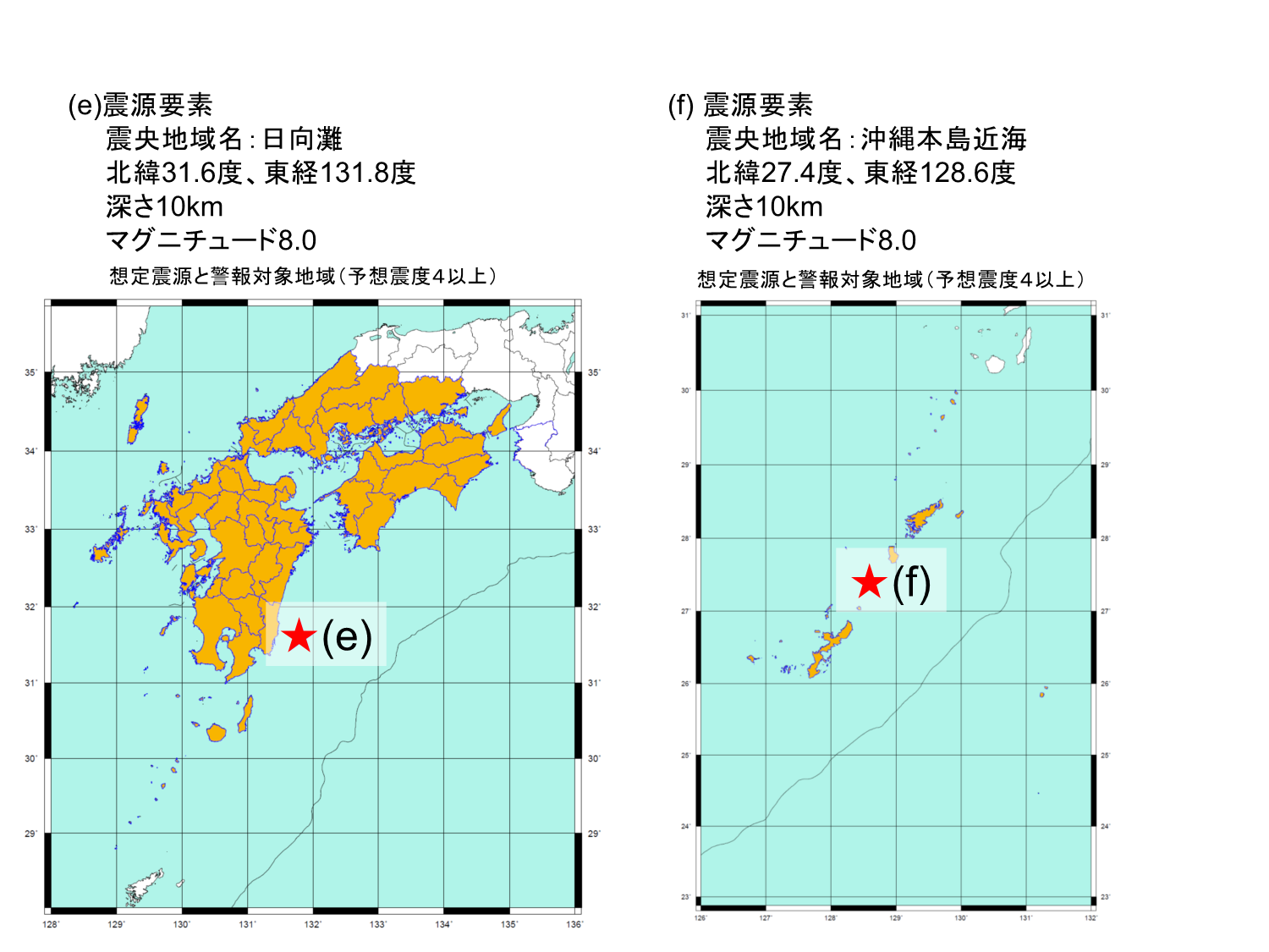 配信する訓練報の強い揺れの地域と震源要素は以下のとおりです。