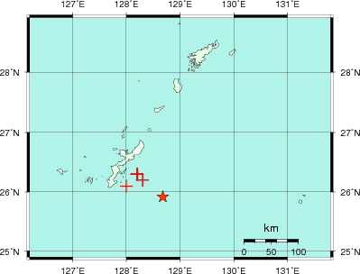 | 震度4程度 | 鹿児島県奄美南部、沖縄県久米島 |
