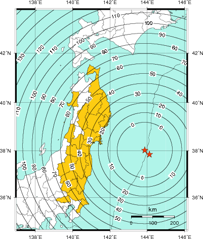 | 地震発生日時 | 震央地名 | 北緯 | 東経 | 深さ | マグニチュード | 最大震度 |