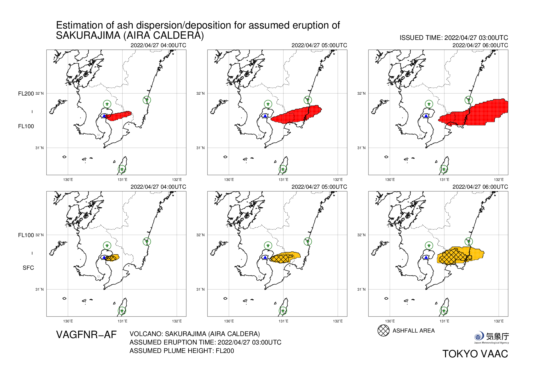 Based on ICAO recommendations, 1 and 2 are issued by the Tokyo VAAC, while 3, 4 and 5 are issued in line with user demand.