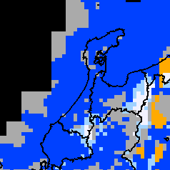| 3時間雨量 (ミリ) | 1~4 | 1~4 | 1~4 | 0 | 1~4 | 1~4 | 5~9 | 0 |