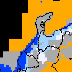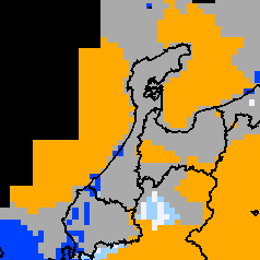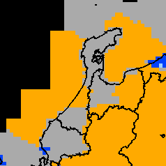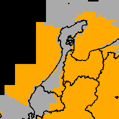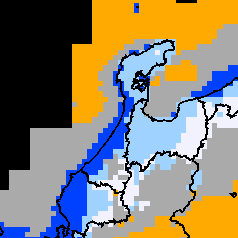 このため、加賀は曇りで明け方まで雨か雪、能登は曇りで未明雨か雪、ともに未明まで雷を伴う所があるでしょう。