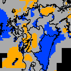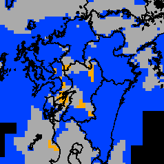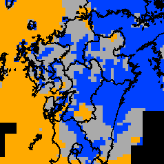 | 3時間雨量 (ミリ) | 0 | 0 | 1~4 | 1~4 | 1~4 | 15~19 | 0 | 0 |