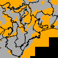 | 3時間雨量 (ミリ) | 0 | 0 | 0 | 0 | 0 | 0 | 1~4 | 1~4 |
