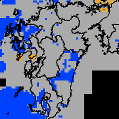 | 3時間雨量 (ミリ) | 0 | 1~4 | 5~9 | 5~9 | 10~14 | 5~9 | 5~9 | 0 |