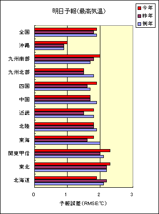 (注3)「最高気温」「最低気温」の予報誤差(RMSE)は、「検証方法の説明」を参照してください。 .