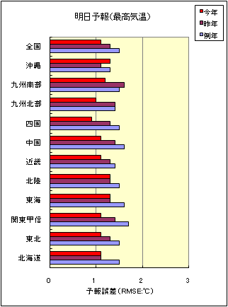 | (注3)「最高気温」「最低気温」の予報誤差(RMSE)は、「検証方法の説明」を参照してください。 |