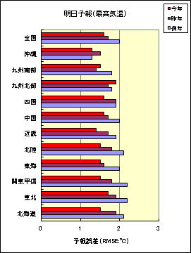 | (注3)「最高気温」「最低気温」の予報誤差(RMSE)は、「検証方法の説明」を参照してください。 |
