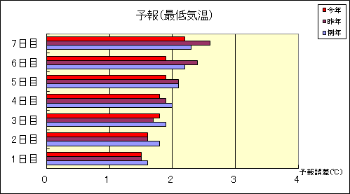 (注2)「最高気温」「最低気温」の検証は、1日目は17時発表予報、その他は11時発表予報が対象です。