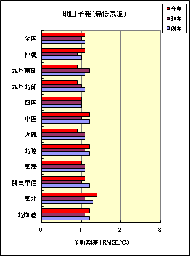 | (注3)「最高気温」「最低気温」の予報誤差(RMSE)は、「検証方法の説明」を参照してください。 |